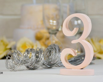 Wedding Decor, Pale Pink Wooden Table Numbers Pale Pink Wedding Decorations Free Standing Wedding Table Numbers TNF5-140-PAINTED