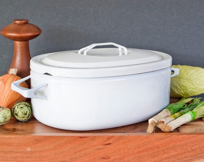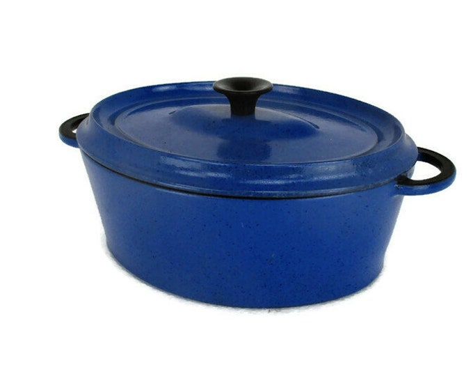 vintage French Le Creuset Style Blue Cast Iron Dutch Oven Casserole 29