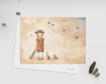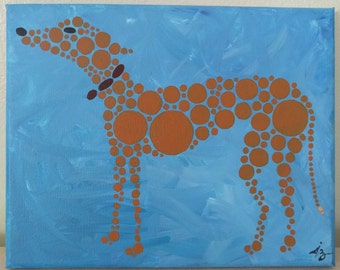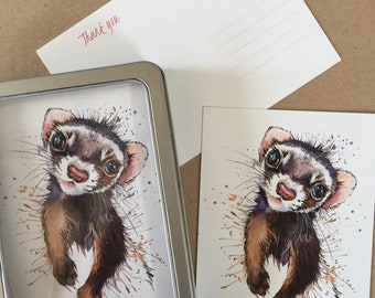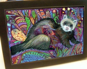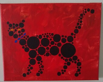 Set of five postcards suitable for framing. Original signed artwork depicting different pets done entirely in circles. Cards are professionally printed on 16-pt cardstock with a silky matte finish. Blank on back.