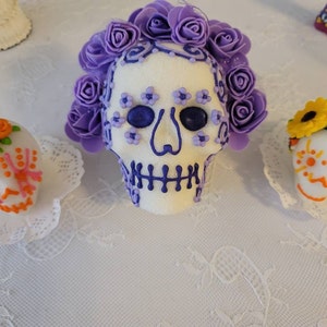 Small, medium, and large skulls Sold individually. Minis are sold in a set. Traditional sugar skulls. I grew up around these as a child. I love baking the traditional sugar skulls every year. I decorate each one by hand (piping). We tend to use these for the day of the dead altars, but I know some people use them to decorate their homes around Halloween time. They are decorated using mainly sugar, but the eyes are sometimes decorated with sequins (not edible). Sometimes I use other materials such as paper, foil, etc. depending on skull and style. If you need them blank/not decorated for school/home projects please let me know. I can ship them undecorated/blank for you as well. If you want ONLY sugar decorations message me as well, I can make sure to use only sugar. I ship from Texas. I care to make these detailed and colorful. These ship FREE using USPS shipping. PLEASE double check your mailing address. At this time, I have a very difficult time matching private messages to orders when you realize you ordered to the wrong address. You can type in your requests in the actual order form in the message to seller area and this gets printed into your order form.