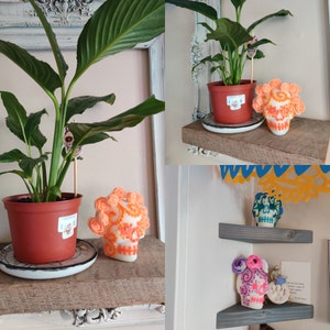 I requested specific colors for my skull and the seller was happy to accommodate. I love how this skull came out. This is my second year ordering from J's Dallas Crafts and they did not disappoint. Everything came out beautifully and nothing was damaged upon arrival. I always look forward to this time of year and I am glad I have found a reliable seller to order my sugar skulls.