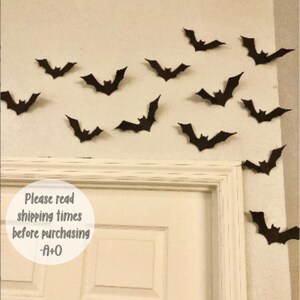 Read the full title Black Bats, Halloween Bats, Wall Bats, Card stock Bats, Cut-outs, Halloween Wall Decorations, Paper Bats, Party Decor, Halloween Decor,