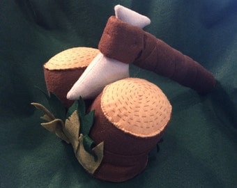 - Materials: wooden dowel rod, felt, polyfil, thread