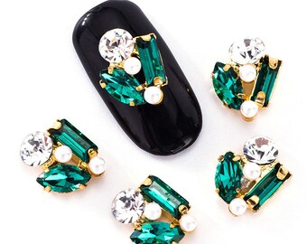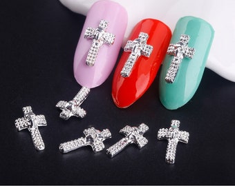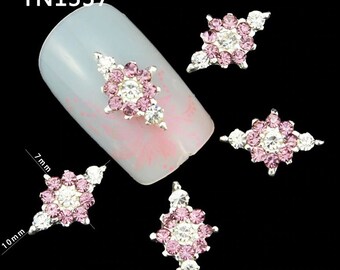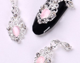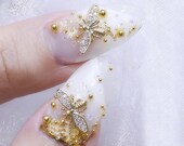 10pcs Glitter white 3d Nail Art Decorations with Rhinestones, Alloy Nail Sticker Charms Jewelry for Nail Gel/Polish Tools