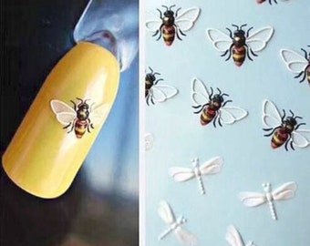 3D Acrylic Engraved Natural bee Nail Sticker Nail Water Decals Fashion Empaistic Nail Water Slide