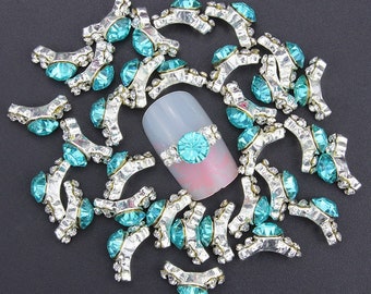 10 Pcs 3D Nail Art Decorations Diy Glitter Silver Alloy Charm Clear Rhinestones For Nail Art Light Blue Crystal For Nails Tools
