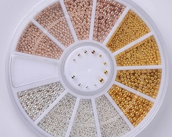 1 Box Steel Beads Nail Studs Mini Steel Bead Multi-size Gold Sliver Champagne Glitter Mixed 3D Nail Art Decorations In Wheel