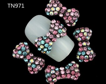 10pcs Glitter Colorful 3d Bows Nail Art Decorations with Rhinestones, Alloy Nail Charms Jewelry for Nail Tools Suppliers