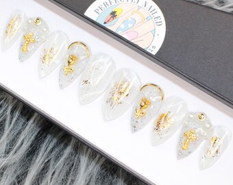Winter Nails, Gold and White Nails, Press On Nails, Glamorous, Rose Gold Chrome Nails, Gold Finger Nails, Gold Glitter Nails, Glue On Nails