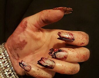Zombie Nails, Halloween Press On Nails, Blood and Gore, Special Effects nails, Halloween Party Nails, Stick On Nails, Glue on Nails,