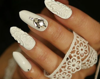 Wedding Nails, Bridal Nails, Bride Nails, Swarovski Nails, White Fake Nails, Press On Nails, Stick On Nails, Artificial Nails, Easy Manicure
