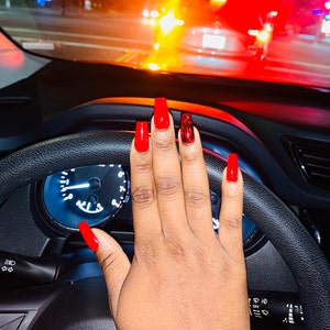Choose between Long Coffin, Long Stiletto, Medium Coffin, Medium Almond, Medium Round, Medium Square, Short Oval or Short Soft Square. All our products are customizable, just send us a message to inquire.