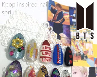 Smells Like Spring Spirit - Handmade Glue On Nails | Korean Nails | Japanese Nails | False Nails | Fake Nails | Gel Nails | 3D Nail Art