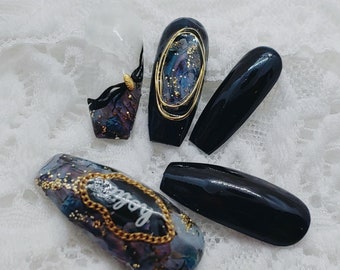 Hellsong - Handmade Glue On Nails | Korean Nails | Japanese Nails | False Nails | Fake Nails | Gel Nails | 3D Nail Art | Halloween -