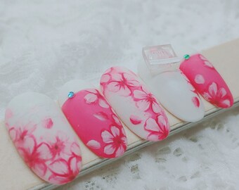 Sakura Cube - Handmade Glue On Nails | Korean Nails | Japanese Nails | False Nails | Fake Nails | Gel Nails | 3D Nail Art
