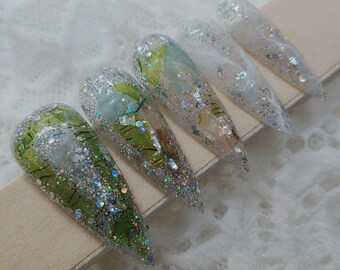 Frozen Forest - Handmade Glue On Nails | Korean Nails | Japanese Nails | False Nails | Fake Nails | Gel Nails | 3D Nail Art