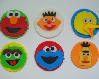 Sesame Street Inspired Fondant Cupcake or Cookie Toppers- Edible 1 DOZEN