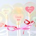 Each lollipop is approximately 2 inches high on a 4 1/2 inch paper stick and wrapped in a cello bag