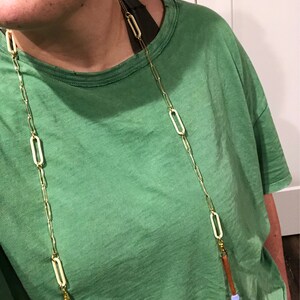 This eyeglass chain made out of vintage Italian cellulose acetate for that certain someone who-doesn't want to lose their glasses or readers, but doesn't want to look frumpy either.