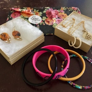 All of our jewelry and accessories are made from Italian acetate-a light-weight vegan plastic. Please remember when purchasing our jewelry that Acetate is material that will not break or chip easily like other plastics and horn jewelry out on the market. This is a plastic made for the optical industry, so it was created for durability and comfort. All of our pieces will be with you for years, and most of our designs are simple, classic shapes that will indeed always be relevant in your wardrobe. Wipe clean with a soft cloth.