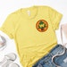 Yellow Gildan Unisex Boyfriend Fit / Ladies Fitted Ringspun T-Shirt green and brown glitter vinyl patch.