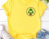 Yellow Gildan Unisex Boyfriend Fit / Ladies Fitted Ringspun T-Shirt green and brown glitter vinyl patch.