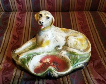 Vintage Chalkware Poodle Table Lamp - Pink Pillow Dog