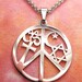 Double-sided charm is about 15mm wide, 17mm long, and 1mm thick. The bail has a 2mm by 2.5mm opening for a chain.