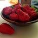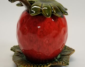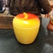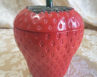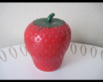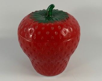 Adorable Hazel Atlas strawberry milk glass jam jars. In good vintage condition - one strawberry is more worn and not as bright as the other (please see image).
