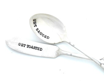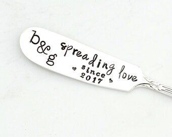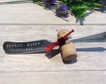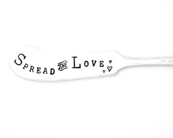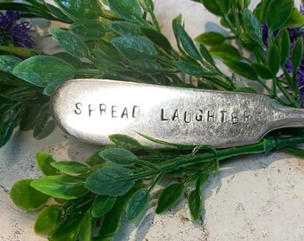 Spread Some Happy™ Spreader. Hand Stamped Vintage Silverware by Sycamore Hill™ Original Design. Custom, personalized flatware. Hostess Gift.