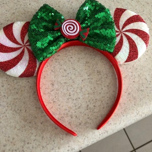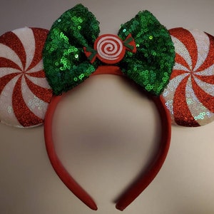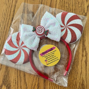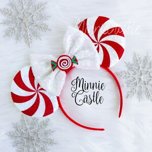 Red peppermint Minnie ears, Peppermint Mickey ears, Christmas Minnie ears, Christmas ears, Candy Cane Minnie Mouse Ears, Red Peppermint ears