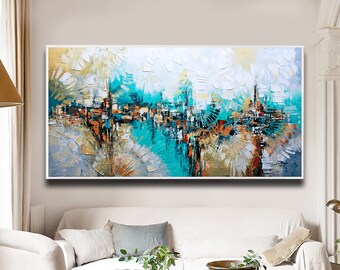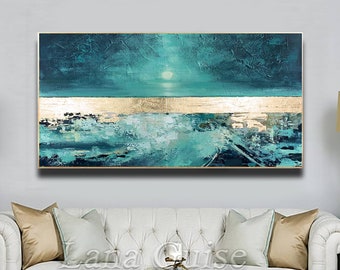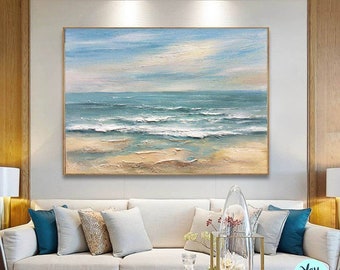 Original Sea Abstract Oil Painting,White Waves Texture Painting,Large Sky And Sea Painting,Large Ocean Canvas Painting,Living Room Art