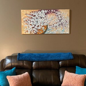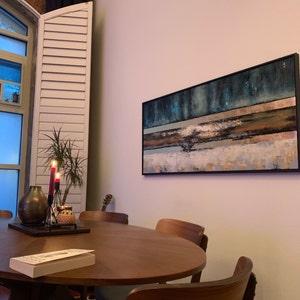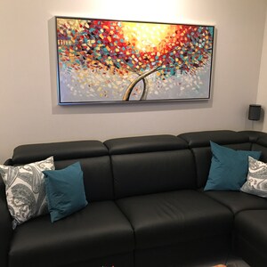 This Oil painting is stunning and breathtaking! Definitely worth 5 plus stars! The paint strokes are so varied and remarkable. I could not be happier! Lana Guise created this just as I imagined and it is hanging prominently in my living room. The packaging was outstanding and I can still smell the fresh paint! I love it! Sense of Calmness is an understatement. This painting brings such peace and tranquility to the room.