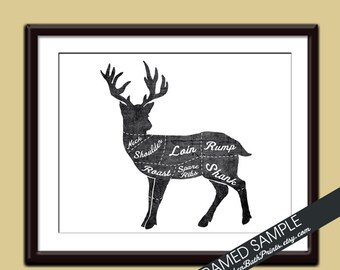 VENISON (Butcher Diagram Series) - 8x10 Art Print (Featured in Vintage Chalkboard and White) Customizable Kitchen Prints