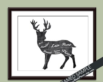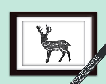 VENISON (Butcher Diagram Series) - Art Print (Featured in Vintage Chalkboard and White) Customizable Kitchen Prints