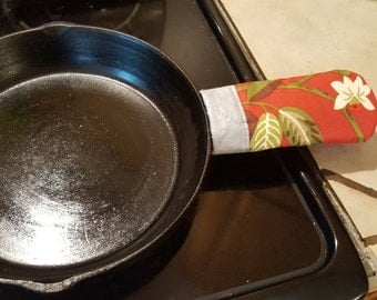 Cast Iron Pot Handle Holder, choice of fabric, or custom, pot holder, handle sleeve