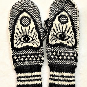 Read the full title Ouija Mitten Digital Pattern, Ouija Planchette Knit Mitten Pattern, Pattern for Winter Spooky Mittens
