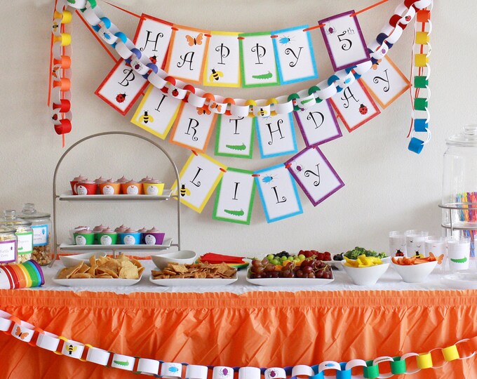 Rainbow of Bugs Birthday PRINTABLE Party Decorations - EDITABLE TEXT >> Instant Download | Paper and Cake
