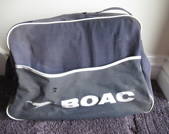 Vintage British Airways Airline Bag - Vinyl Travel Carry-On - Red White Blue