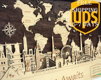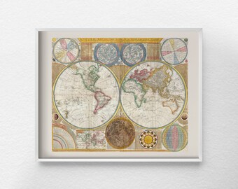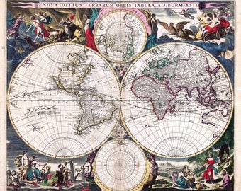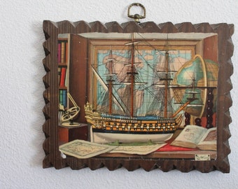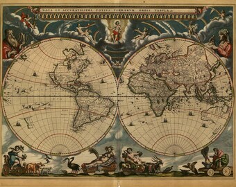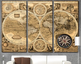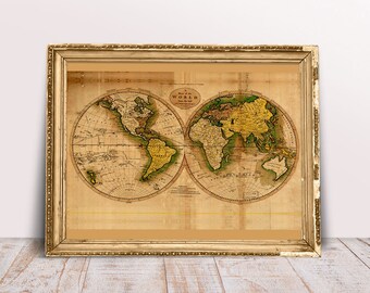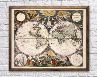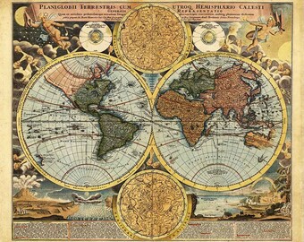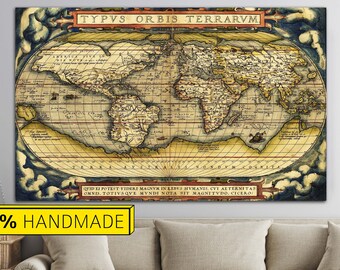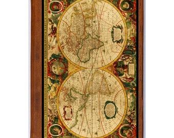 Vintage Wood Antique World Map Wall Plaque - Hydrographica Tabula