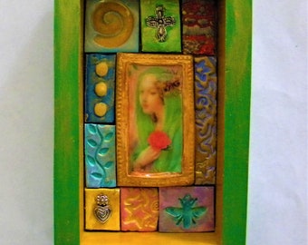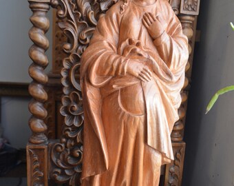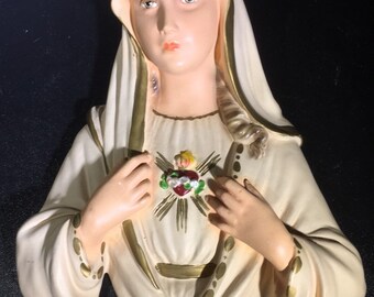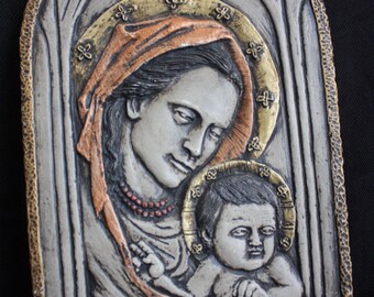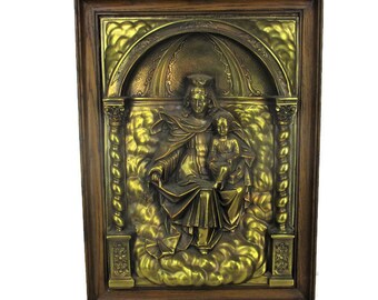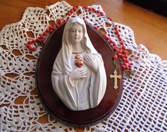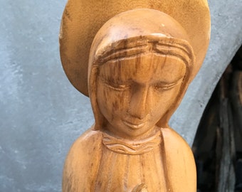 Vintage Wood Virgin Mary Wall Plaque Wooden Madonna