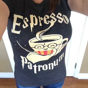 Read the full title Espresso Patronum T-shirt, Long Sleeve Tee, Sweater, Hoodie for Harry Potter and Coffee Lovers, Funny Wizard Tee Shirt Gift
