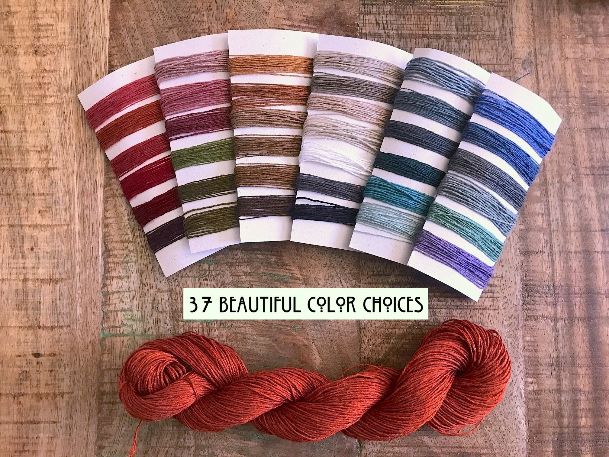 • 33 low impact dyed colors, Winter Birch & Snow Owl, whitened w/ H202 only & Roan Heather (undyed natural linen).