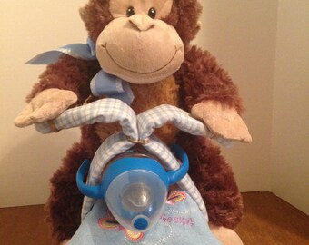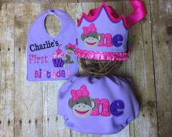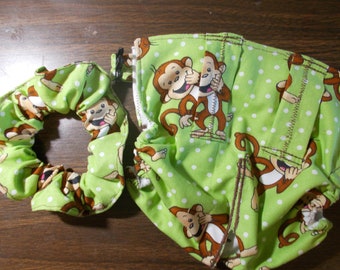 Sock Monkey Eaflap Hat and Matching Monkey Diaper Cover - Photography Prop (Grey, Cream and Red)