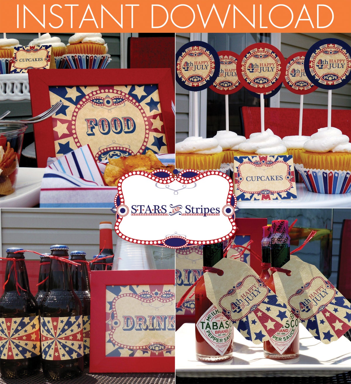 4th of July Printable Party - Instant Download - DIY Party Package - All-American Vintage - Do-it-Yourself Print - Stars & Stripes - Instant