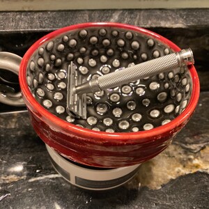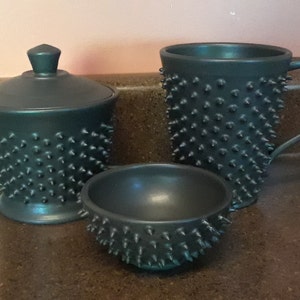 Hand painted in an awesome gloss orange and gun metal black glazes. Interior is clear glazed for easy cleaning.