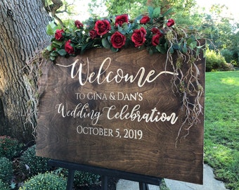 Custom Carved Wedding Welcome Wood Sign with Custom Names and Date