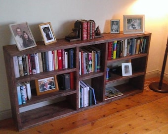 Bookshelf Bookcase Shelving Unit Toy Storage Laser Cut Housewarming Gift Reclaimed Wood Display Case "RHOMBUS" (24"w 24"h) Hexagonica