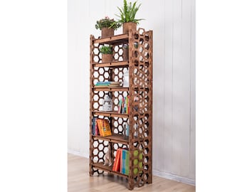 Bookshelf Wooden Shelves Plant Stand Toy Storage Display Case Laser Cut Wood Bookcase Shelving Unit "HONEYCOMB" (29.5"w 72"h) Hexagonica