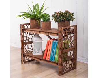 Bookshelf Plant Stand Bookcase Shelving Unit Housewarming Gift For Men Reclaimed Wood Laser Cut "STONE" (29.5"w 24"h) Hexagonica